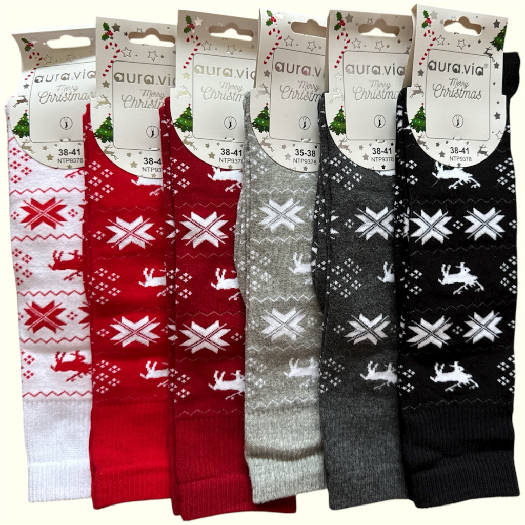 AURA.VIA női térdzokni – hópehely és rénszarvas mintával