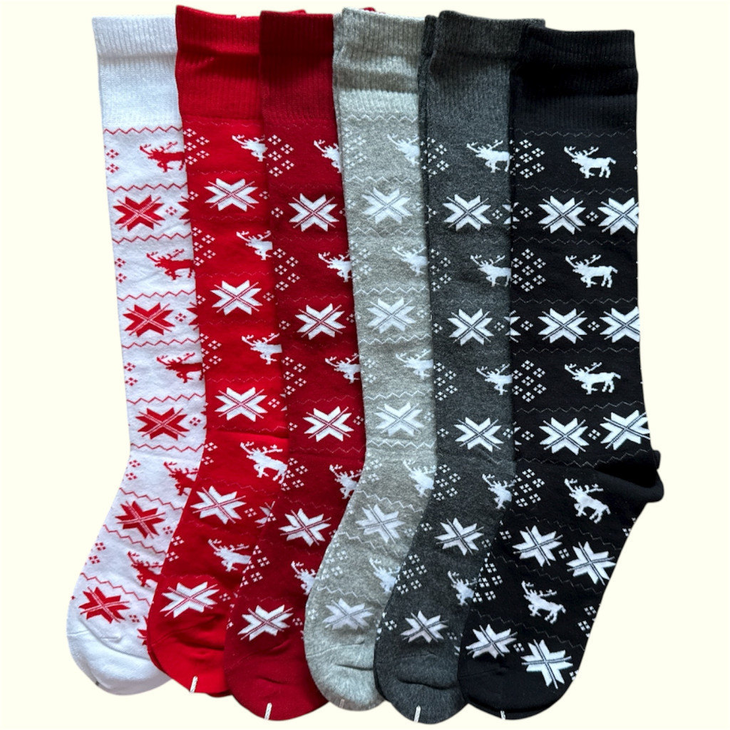 Tedd ünnepivé és különlegessé a mindennapjaidat ezzel a karácsonyi hangulatú, hópehely és rénszarvas mintás térdzoknival! Legyen szó hétköznapi viseletről, téli pihenésről vagy ajándékozásról, mindig meghittséget és vidámságot sugároz.